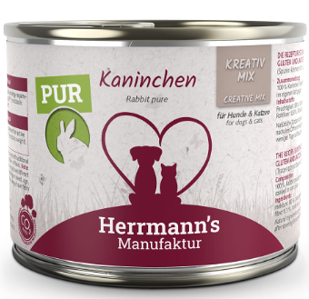 Con la nostra linea Pure di KREATIV-MIX puntiamo sulla carne pura al 100%, composta sempre da carne di muscolo e frattaglie di coniglio facilmente digeribili.