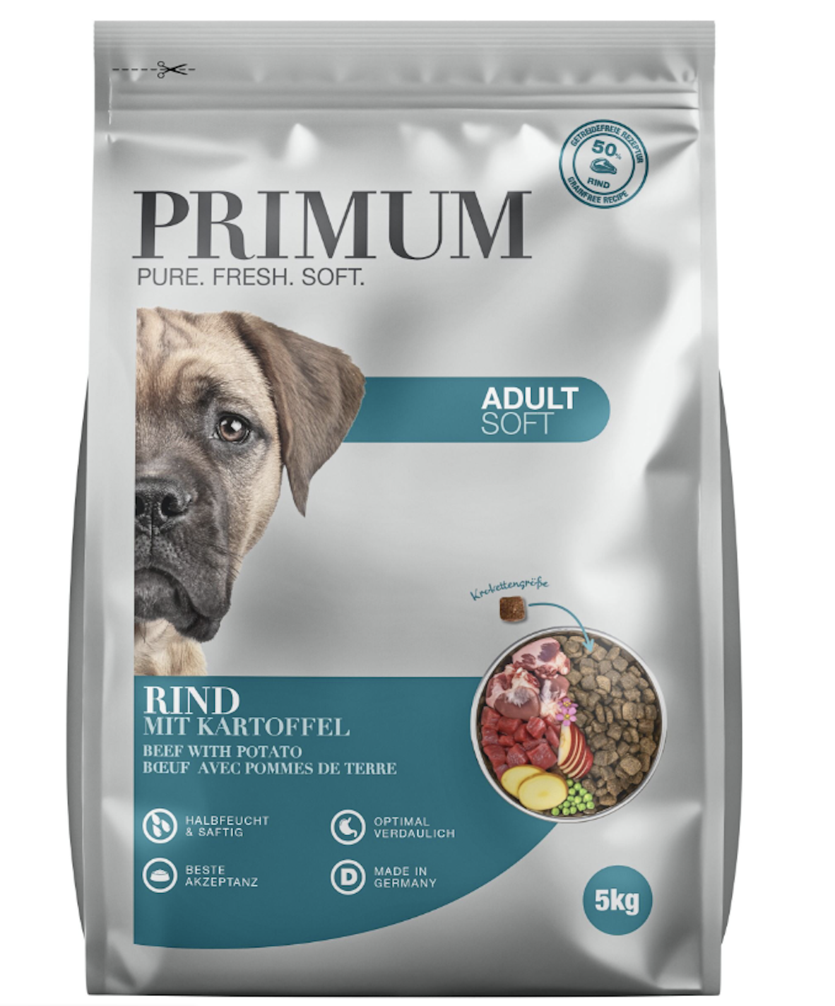 La versione manzo con patate PRIMUM fornisce al tuo animale tutto ciò di cui ha bisogno.
